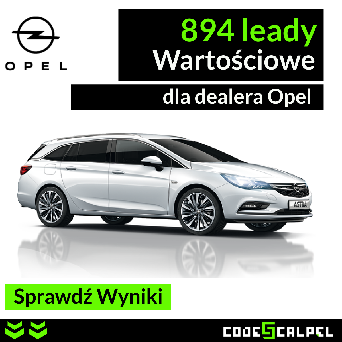 Dowiedz się jak w ciągu 60 dni pozyskać 894 wartościowe leady dla dealera samochodów marki Opel i zwiększyć sprzedaż w salonie.